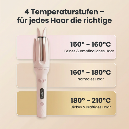 Ja, absolut. Mit vier einstellbaren Temperaturstufen von 150°C bis 210°C bietet das Gerät die perfekte Hitze für jeden Haartyp. Während niedrigere Temperaturen ideal für feines Haar sind, bändigen die höheren Stufen mühelos auch dickeres Haar, um langanhaltende, wunderschöne Wellen und Locken zu zaubern.